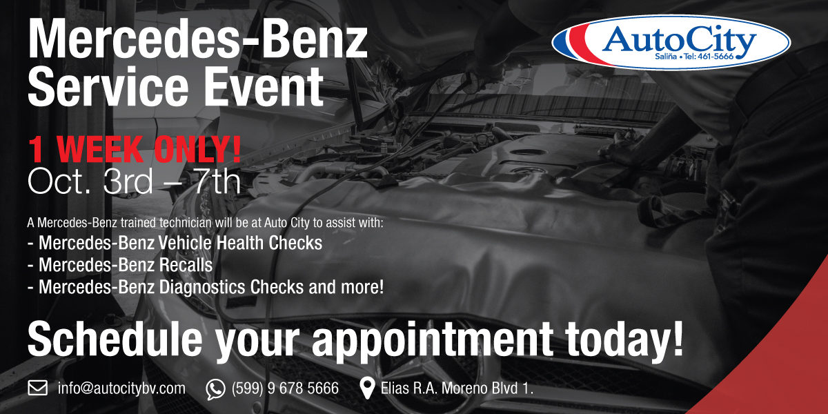 Esaki en konekshon ku un Mercedez-Benz Service Event kaminda un mekaniko sertifika di Mercedez-Benz lo tei pa asistí bo ku: