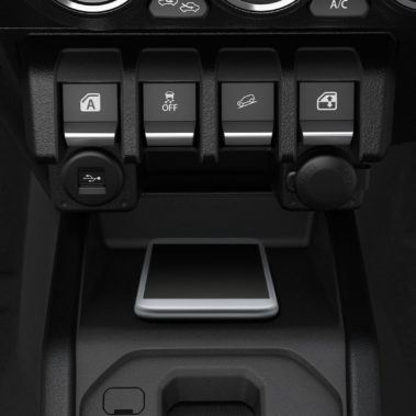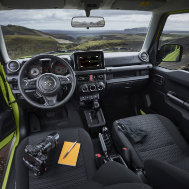 Jimny’s utilitarian interior is humble yet handsome; perfect for the most rugged terrain. The 7″ infrared touchscreen has Apple CarPlay and Android Auto built in and can be operated even with gloves on. This means you stay connected no matter the environment.